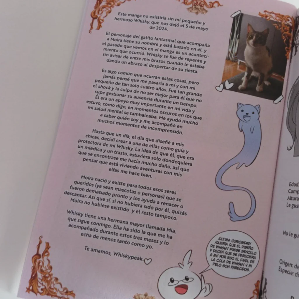 También nos gustaría mandar un fuerte abrazo a Zumifresky. Sabemos perfectamente lo que es perder a nuestro animalito de esa manera, y nos ha llegado muy dentro enterarnos. Es una forma preciosa de honrarlo al ilustrarlo en la historia.
